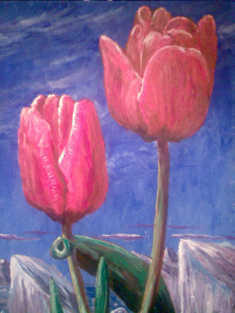 My paintings cover much the same themes but with the extra element of Surrealism from time to time, as per the example on this page.
